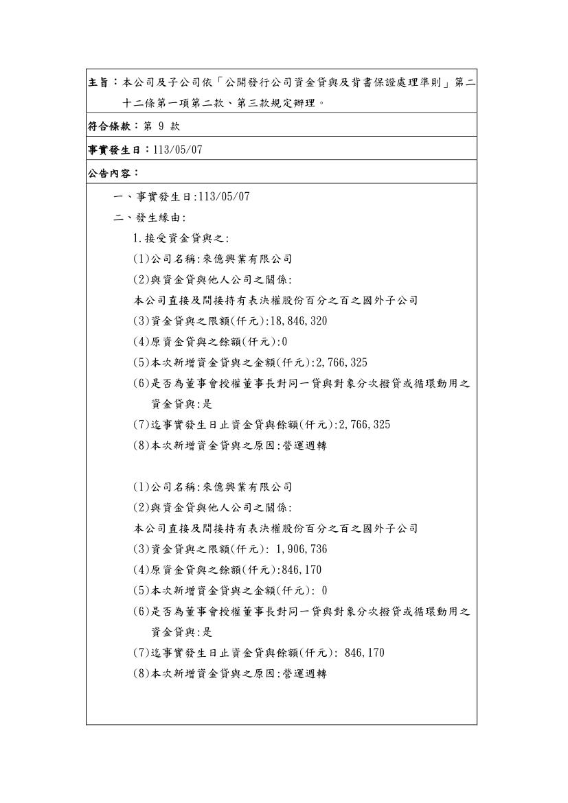 本公司及子公司依「公開發行公司資金貸與及背書保證處理準則」第二十二條第一項第二款、第三款規定辦理