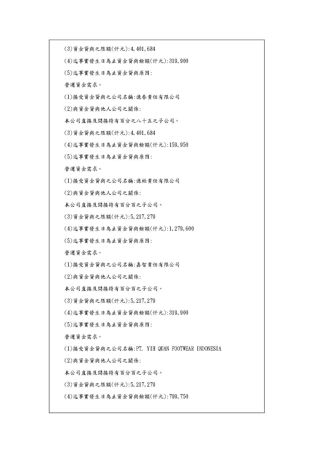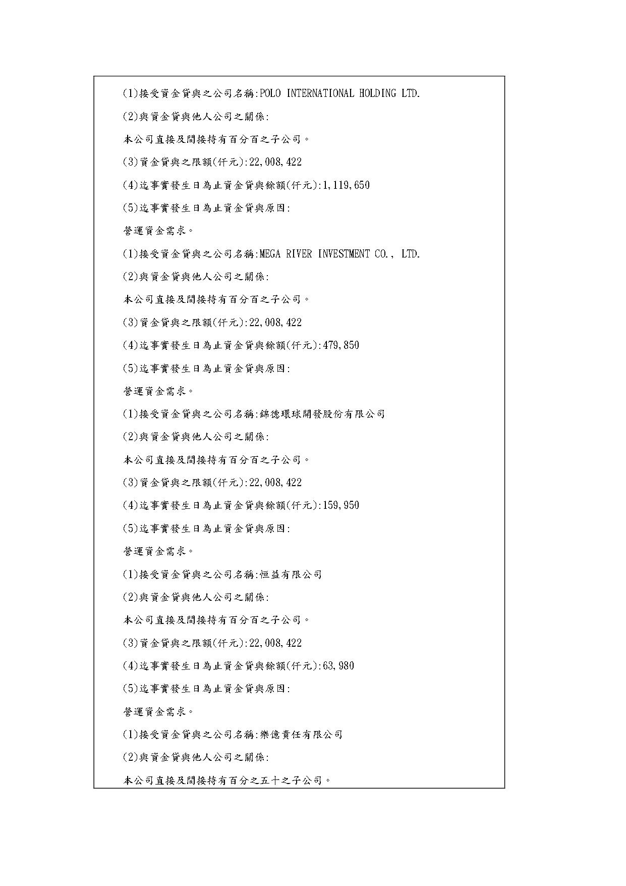 本公司及子公司依「公開發行公司資金貸與及背書保證處理準則」 第二十二條第一項第一款規定公告