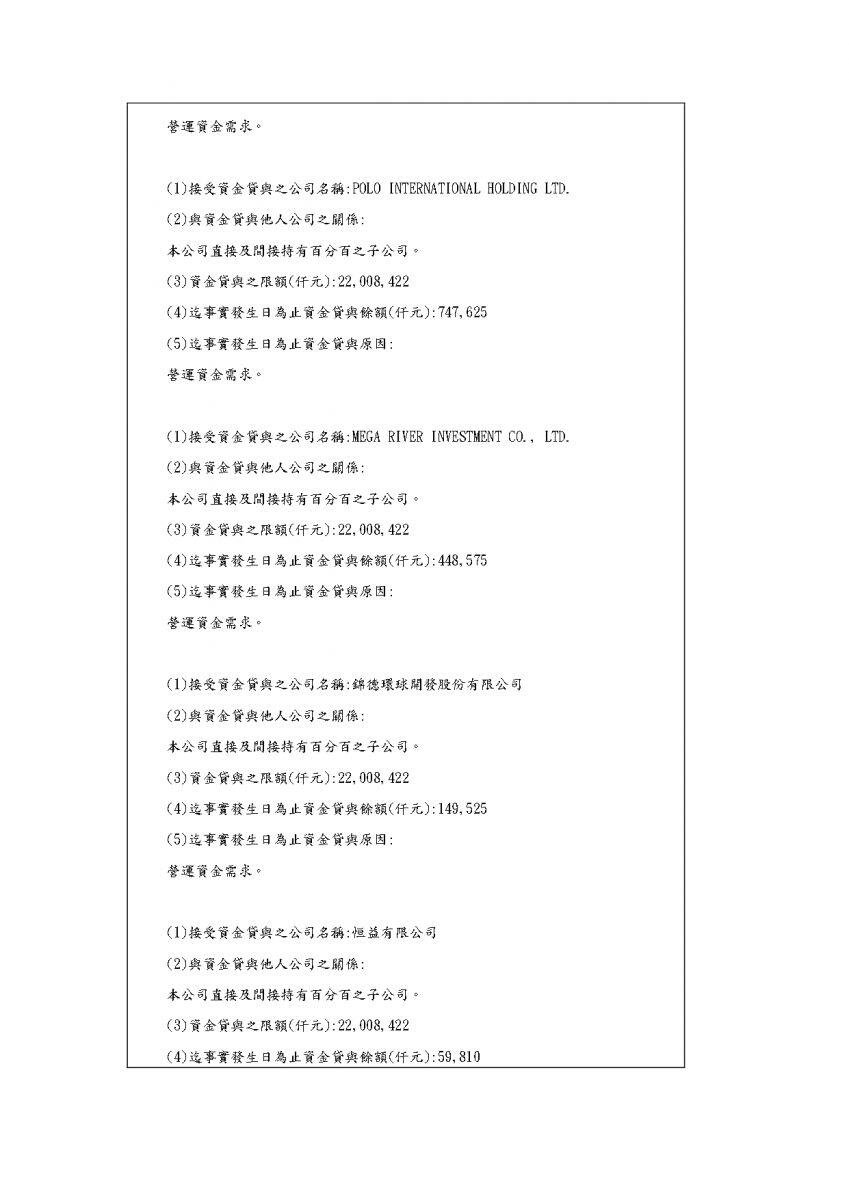 本公司及子公司依「公開發行公司資金貸與及背書保證處理準則」第二十二條第一項第一款規定公告